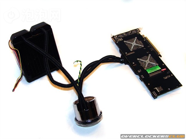 Sapphire的一款高端系列的Atomic HD 4870 X2搭配了全封闭液冷散热系统。具备2*800个流处理器,采用了2*1GB GDDR5显存颗粒,比公版频率要高,为800/1000MHz。在散热方面采用了Asetek生产的液冷散热系统,全封闭的液冷散热系统完全覆盖了2个GPU核心、所有显存颗粒以及供电模块,为显卡带来极致的散热效果。