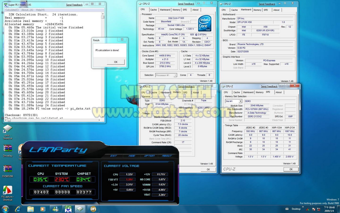 1.328V就可以穩跑 4.4g SUPER PI 32M ,這種 I7 920 應該還沒看過吧 ,系統還是windows7