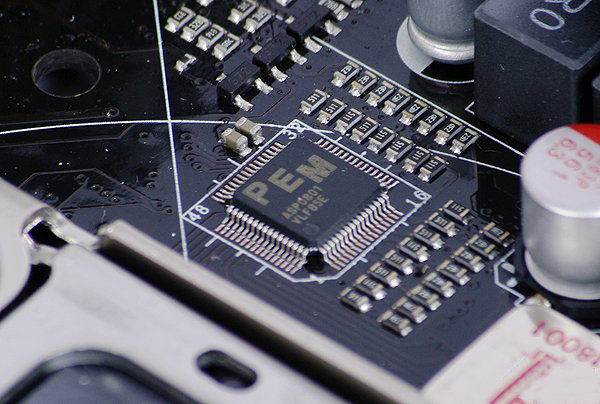 一颗EPU(ASP0800芯片)和一颗PEM(ASP0801芯片)组成的PWM控制模块。延续EPU 6-Engine技术,实现崭新的动态多相电源管理功能,但建议在使用Core i7处理器超频时,不要在系统中安装EPU 6-Engine软件。