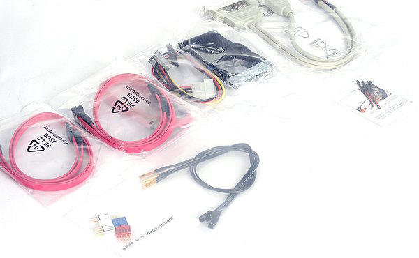 最丰富的配件、最厚的产品说明书等等这些自然逃不掉。图中附件包括:SATA线、IDE线、专用感温线、用以于ProbeIt设计直接能接上电表来测量的线材。