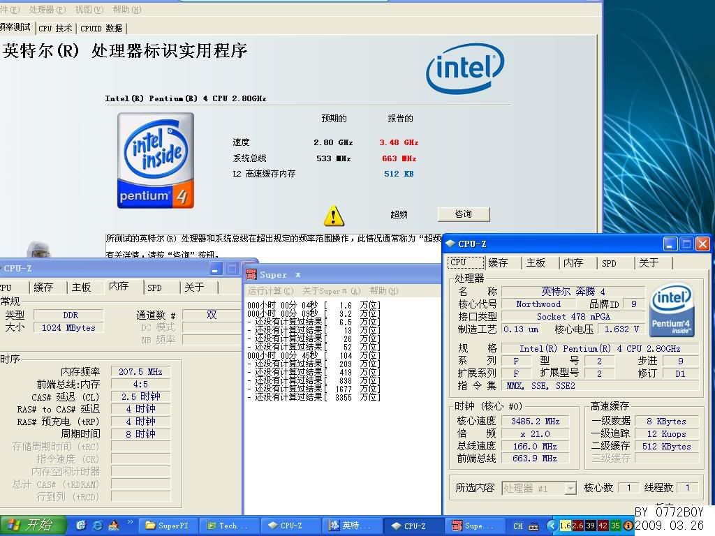 SuperPI104万位原来成绩是1分15秒,不过IBT过不去啊。。。看CPU温度到55的时候自动重启了,按道理说不是很高吧