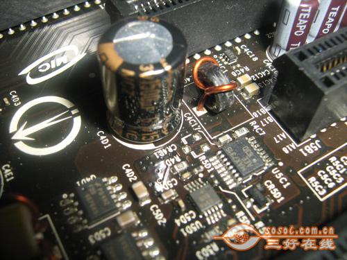 与电容相比板卡中的其他元件、辅助芯片也十分重要,因为它们不但是板卡稳定的必要条件也是功能的基础。在选购板卡的时候看看上面的芯片,就可以对板卡的特性有个基本的了解了。