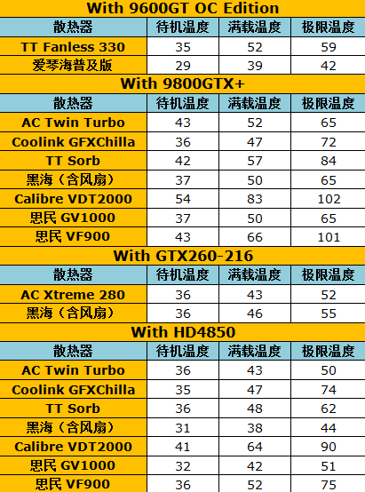 从你这个图里我看这GV1000的散热还是不错的啊,至少都是三甲行列,不过看在他是棒子货的面子上还是BS下它吧 ,黑海是什么系列的散热器??? xkgg74 发表于 2009-4-11 23:06