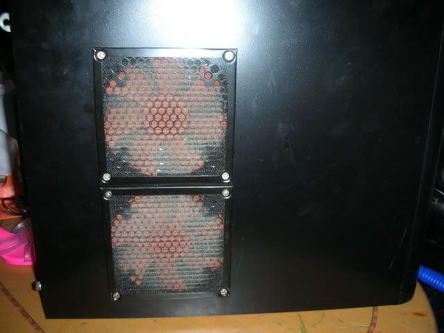 侧板上是745附送的风扇,由於接4PIN,估计很吵,所以改了5V供电,很安静,隔尘网的效果大家应该看到了,这就是一个多月来的灰.