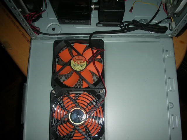 前置是用TT蓝光扇,用过的都知道这4PIN供电的很吵,所以我改成了3PIN供电加上电阻,全速900转,静了,加上减震胶钉,硬碟是WD 32G 10000转.