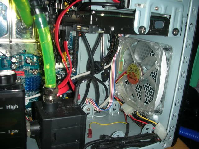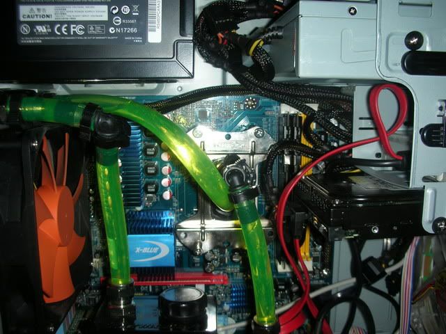 内部,用的是利民水冷头,3分接头,745上的3分UV管,电源是战斧460W,自己包网了.