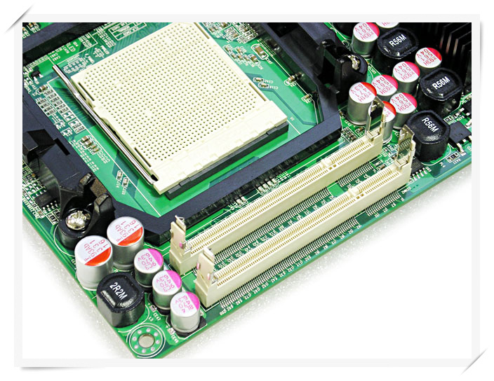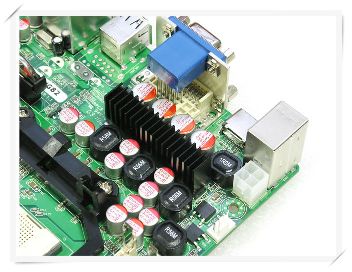 供电部分全部采用固态电容和封闭式电感,MOSFET管还设有散热片,考虑得十分周到。标准的四相供电,足够满足高功耗处理器的需求,当然你得考虑你的电源是否够用。