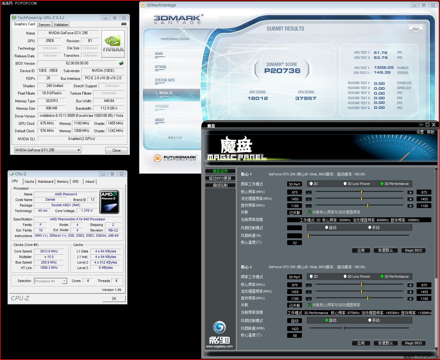 双PCB版GeForce GTX 295 待机52°C 满载74°C