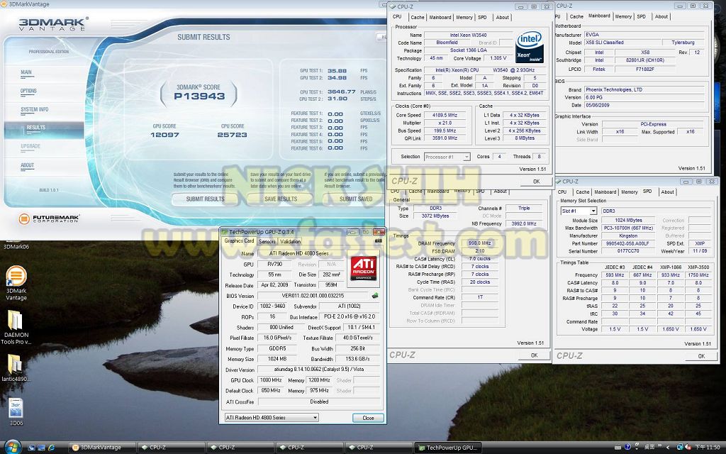 3. 顯示卡超頻核心 1000 記憶體 1200 , CPU 4.2G , P模式 13943分