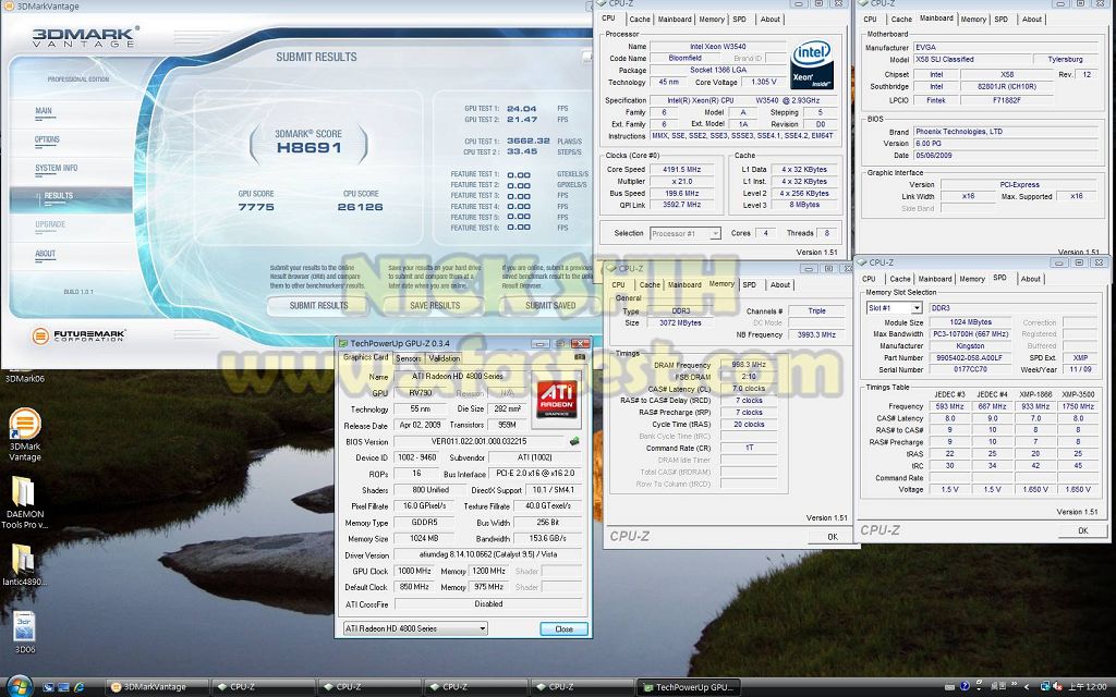 4. 顯示卡超頻核心 1000 記憶體 1200 , CPU 4.2G , P模式 8691分