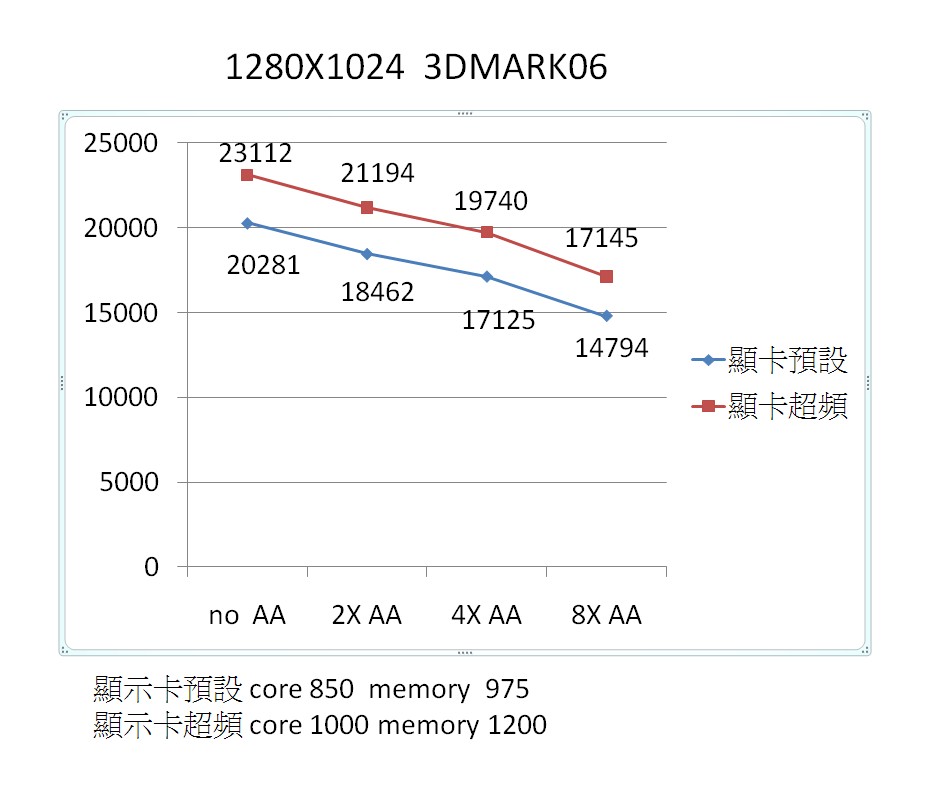 cpu一樣 4.2g , 解析度 1280x1024 , 可以比較一下超頻前後, 分數的差異性