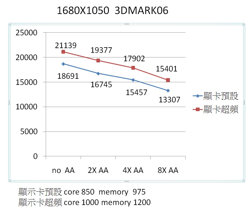 CPU 200X21 = 4.2G 顯示卡時脈全預設 , 跑完 18691 分 , 1680x1050 反鉅齒關閉 noAA