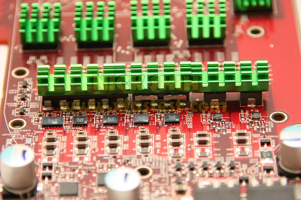 看一下供電模組與散熱片接觸面,這只是暫時權宜之計,之後會有一體化散熱片