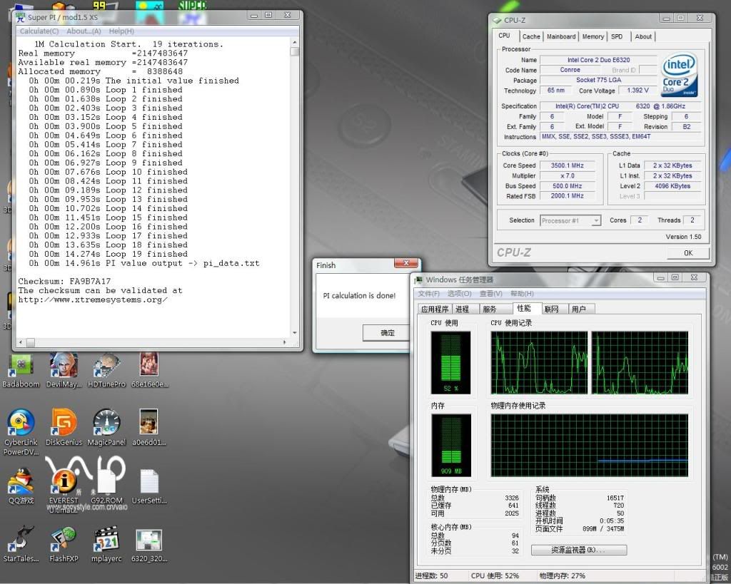 然后大加CPU电压,内存,FSB,VLL,VTT,什么电压全部加起