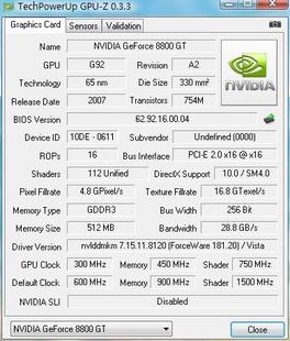 大家看下这张图有什么奇怪的地方不,显卡是双敏无极8800GT玩家限量版,卖家说刷了2D和3D分频,在2D模式下频率全都降了一半,但是像素填充率和显存带宽却也都降低了一半,这个正常吗?