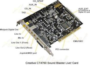 主卡型号CT4760, 镀金接口,功能强大,有LIVE!DRIVER扩展,音质次于标准版。