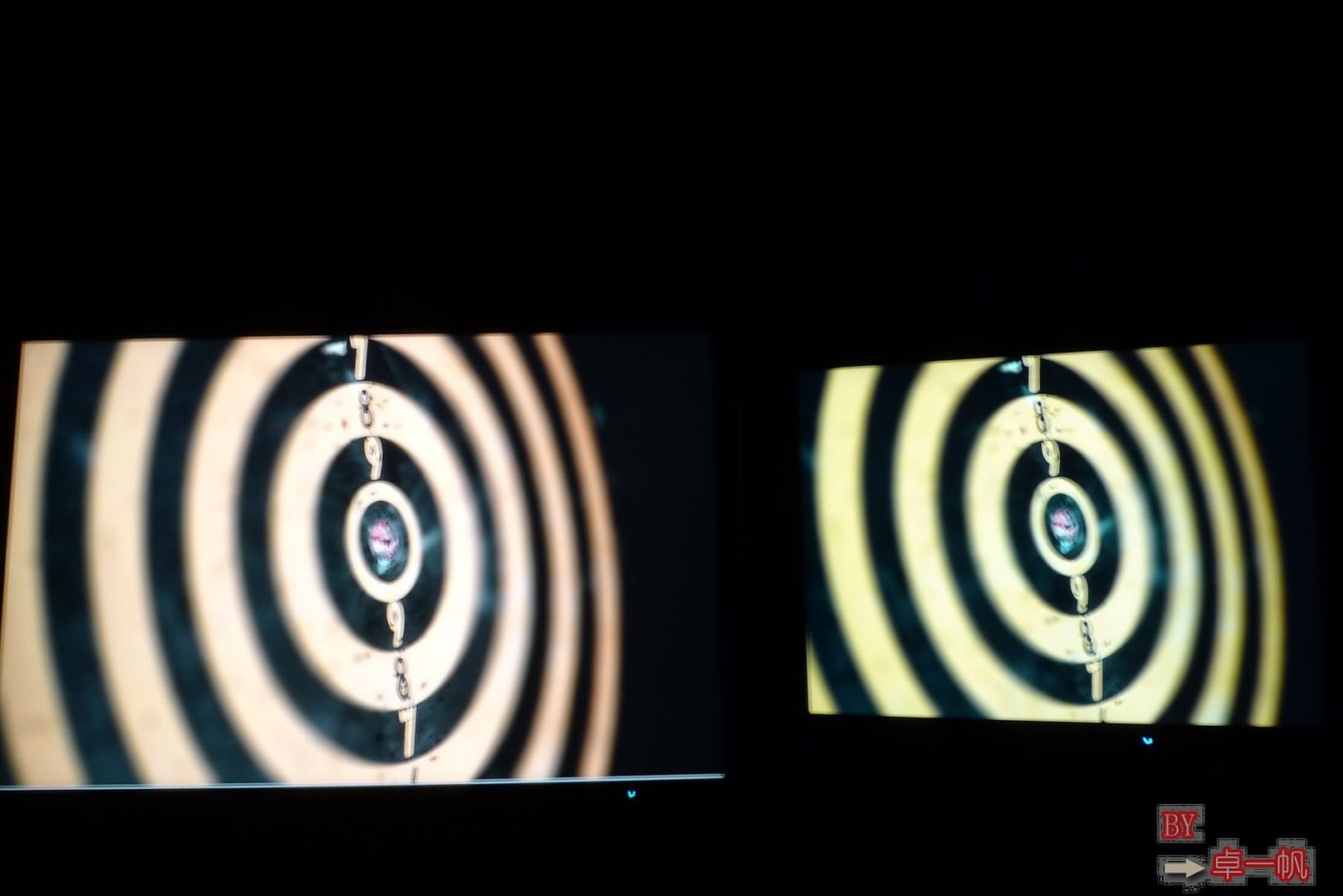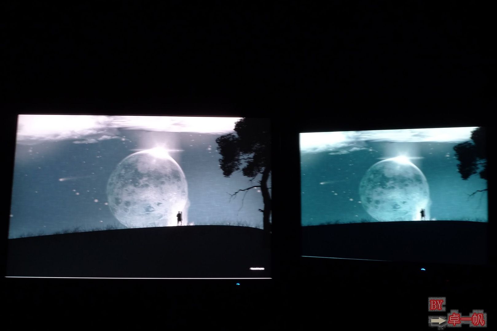 我现在上的图就是我的nec2690wuxi2和cg211的静态对比图。因为cg211有个自定义模式,默认就是5k色温,55%亮度,所以我都设置为5000k,55亮度,对比默认。cg211的对比模式很特别,是3色调节的,红100%,绿76%,蓝59%。2690wuxi2是50%(用的相机是松下LX3)左边:2690wu xi2,右边:cg211