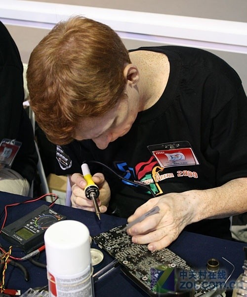 选手聚精会神地改造显卡