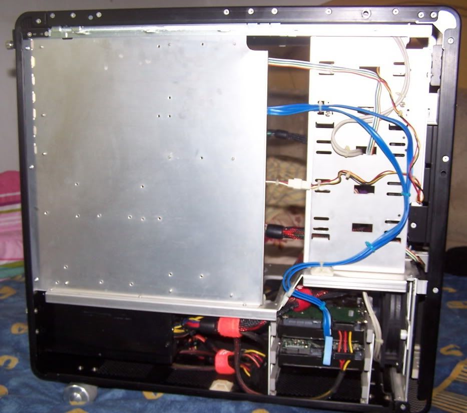 昨天又改了下,主要是又开了个孔;硬盘笼切割了下。取下了EX33的后面部分。