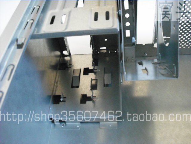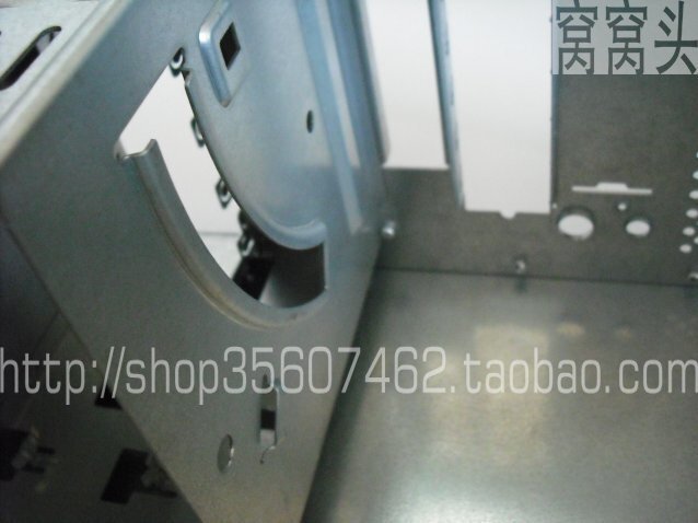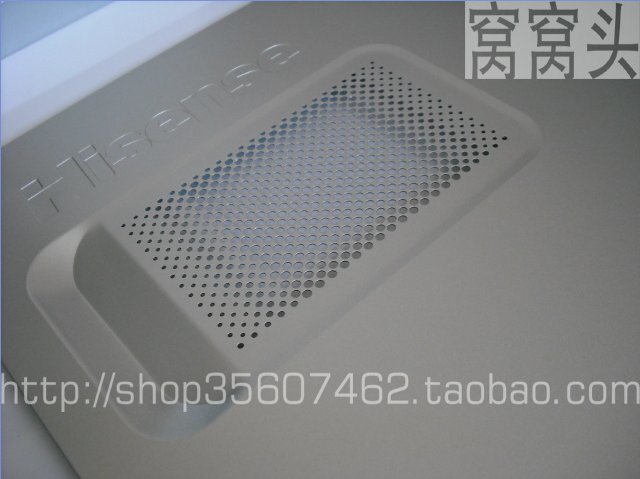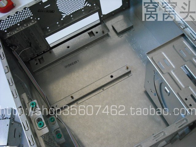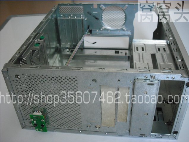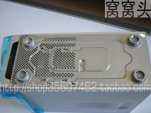 海信原装机箱.可以上小板,标准ATX电源,0.8mm钢板,全折边工艺,用料也比较好,非常扎实,可以上2个光驱,1个软驱或2个硬盘,前置隐藏USB和音频,硬盘架可以自由抽取,下面硬盘位还带防震垫,机箱前后,下方带散热孔,散热不错,后面还可以装1个风扇(8cm或者9cm两种尺寸).