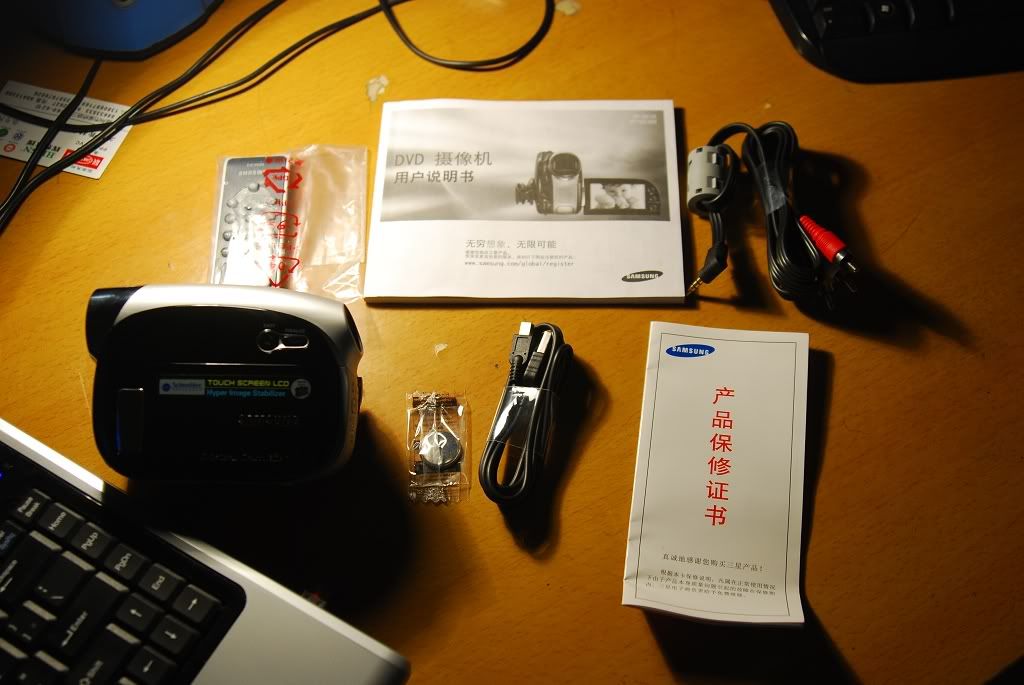 从全家福上看,数据线和遥控的包装纸都没拆开。因为本人不玩DV,所以拿回来就看了一下就放起来了。