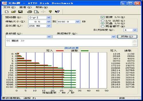 测试软件:ATTO Disk Benchmark 2.4 测试文件大小为