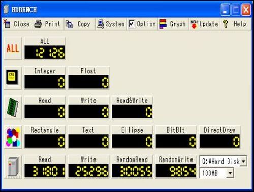 测试软件:HDBENCH 3.0 测试文件大小为100MB