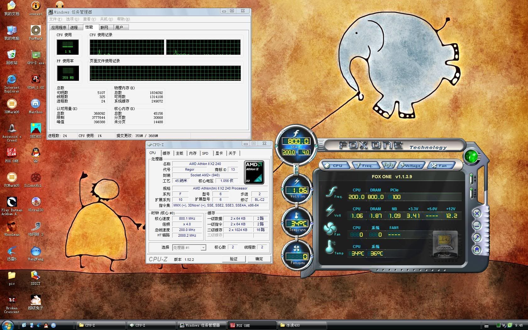 CPU: AMD X2 240 默认2.8G/oc 3.5G