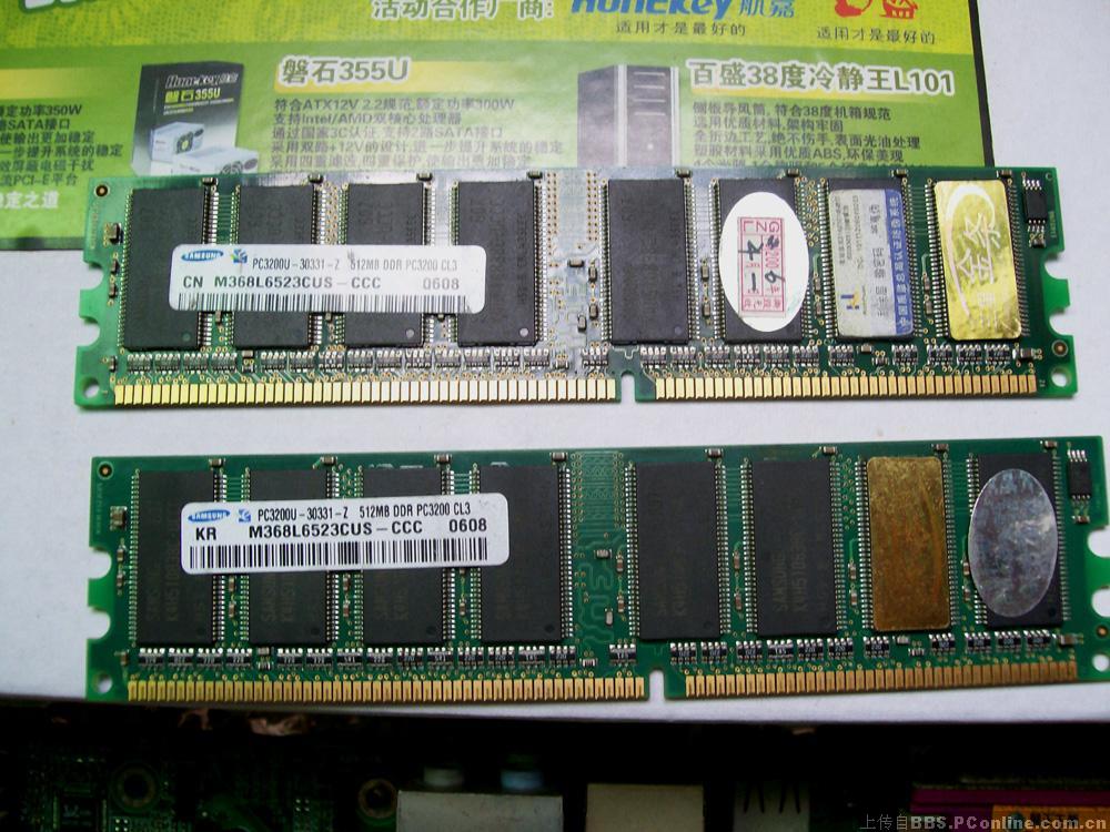 内存 三星金条512X2(蕊片不明) 反正可以上DDR500