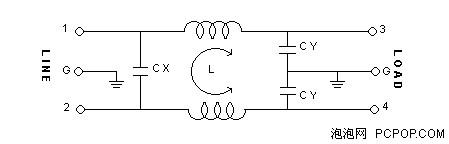 在这个铝壳插座内部使用了两枚差模电感,一对Y电容和一个X电容,在很多电源的一级EMI滤波中都不会设置这样丰富的元件。