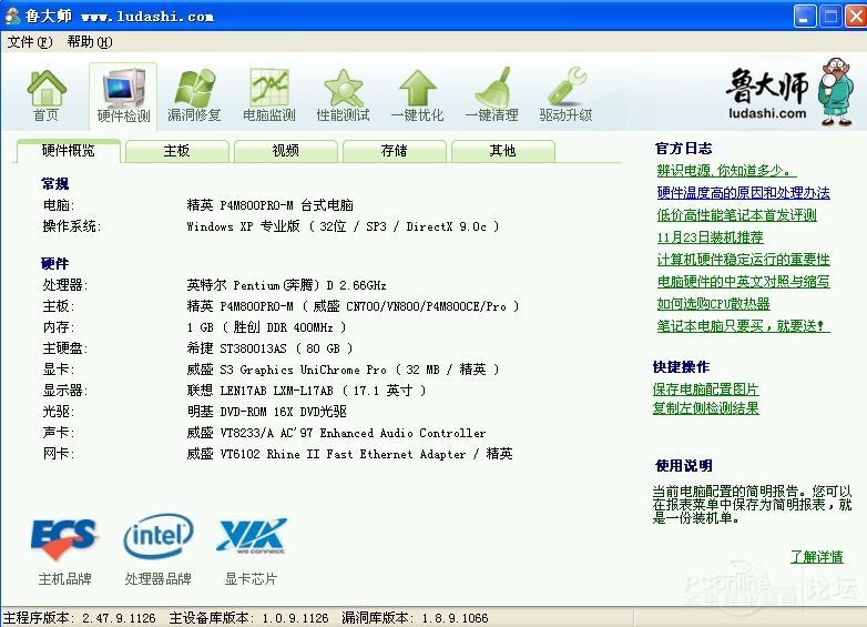 主板:精英P4M800PRO-M 支持DDR400,DDR2 533