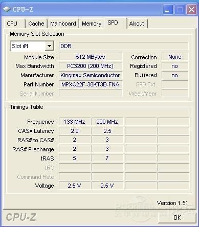 内存:2条 胜创kingmax 512m ddr400 关公红+青眼龙