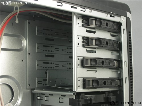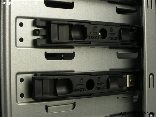 华硕TA-M2机箱机箱外观为黑色,前面板全部由冲孔网覆盖,机箱侧板也由大面积网孔覆盖,为机箱内部硬件提供很好的通风性。 M2机箱正面机箱侧面被大面积冲孔网覆盖,在中心有一个白底银字的‘VENTO华硕机箱’的Logo,在侧板上能安装2个12cm风扇,对散热的帮助非常大,而且一会儿我们能看到,这两个风扇的位置还可以根据需要进行调整。机箱前面板两侧特地开出很多散热孔,对存储设备降温非常有利。 M2机箱侧面 M2机箱顶部安排了鱼鳃状透气孔,热空气比冷空气轻,有的热气会淤积在机箱顶部,这也是大部分机箱的散热死角,M2机箱在这点上考虑非常周全。 M2机箱顶部机箱顶部接口用一个塑料盖保护,只需要压住盖子一侧就可以抬起,接口包含了2个USB接口,耳麦接口和一个E-SATA的数据接口。 机箱顶部不接口部分 M2机箱背面机箱在上部安装电源,电源下面是一个风扇安装位置,可以安装8、9、12cm的风扇,在PCI设备插槽上方也有散热出风口,整体看过外观后感到这款M2机箱在散热上的设计很不错。 打开侧板以后可以看到机箱可以安装4个光驱,4个硬盘。机箱前部还预安装了一个12cm发光风扇。 M2机箱内部整体 机箱后侧的风扇是黑色油封风扇,工作电流是0.32A,如果您需要更大的风压,还可以换成8或者9cm风扇。 M2机箱后部风扇 前面板有四个光驱位,中间有一条Vento的标志,在接通电源后发出幽蓝的光,在标志旁边有电源指示灯和硬盘指示灯,它们和下面12cm发光风扇配合在一起很漂亮。 前面板VENTO标志 M2机箱光驱安装位 |