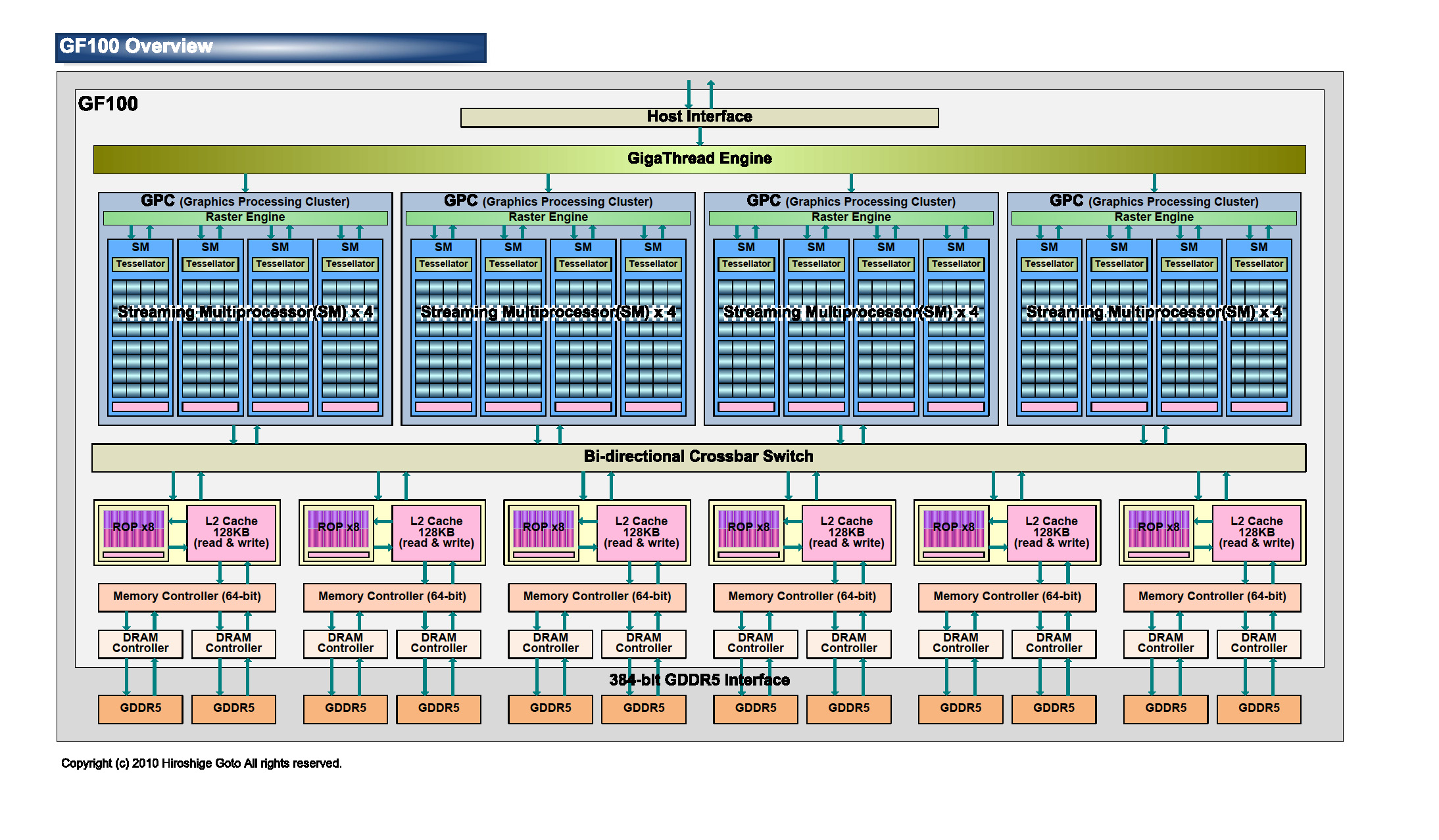 (为了满足DX11的要求,AMD增加了本地数据共享缓存的大小(Local Data Share,LDS),容量达到了32KB,是RV770的两倍.LDS用于同一个线程组(Thread Group)中的线程共享数据.从下图中,我们可以看到,每一个SIMD连接一个LDS,不同的SIMD是不能共享LDS的,因此所有属于同一个线程组的线程都会被线程调度器发送到同一个SIMD上执行.如果不同的SIMD上的线程要共享数据,需要用到全局数据共享缓存(Global Data Share,GDS).在Cypress中,GDS的容量也倍增了,达到64KB.到目前为止,我们对GDS的了解仍然有限,与LDS不同,并没有指令能显式的操作GDS.据Beyond3D的消息,在未来的OpenCL扩展中会提供对GDS的访问,目前GDS只对编译器可见.)