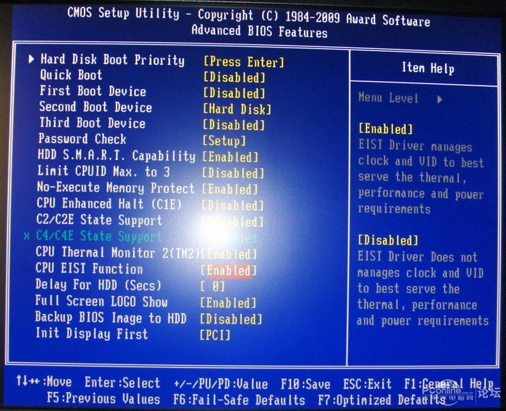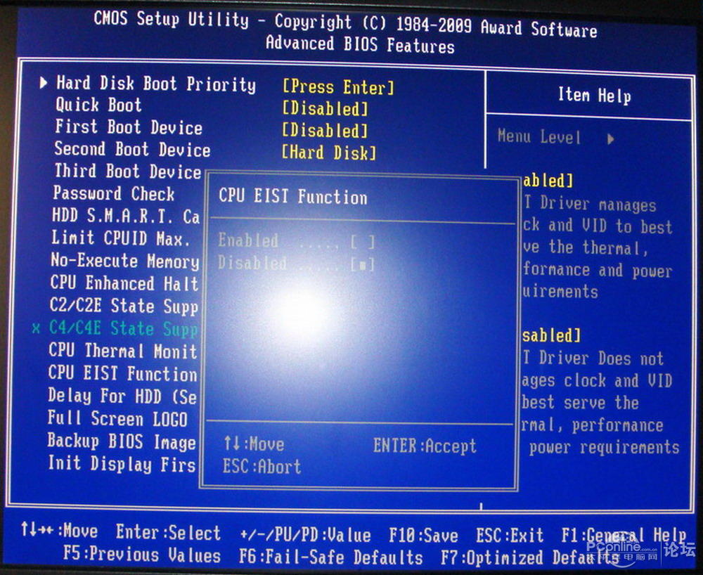 二、关闭节能。由于节能与超频有冲突,找到该选项进入关闭C1E和E1ST