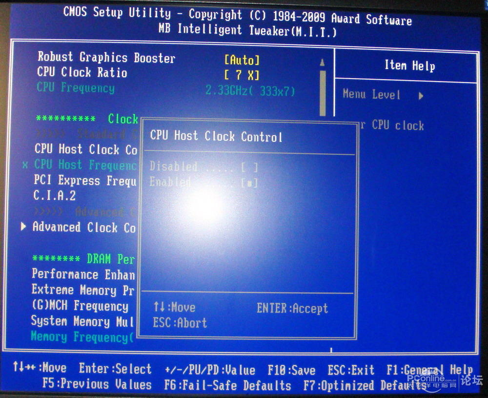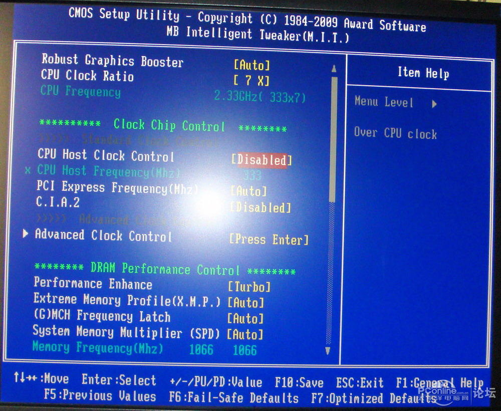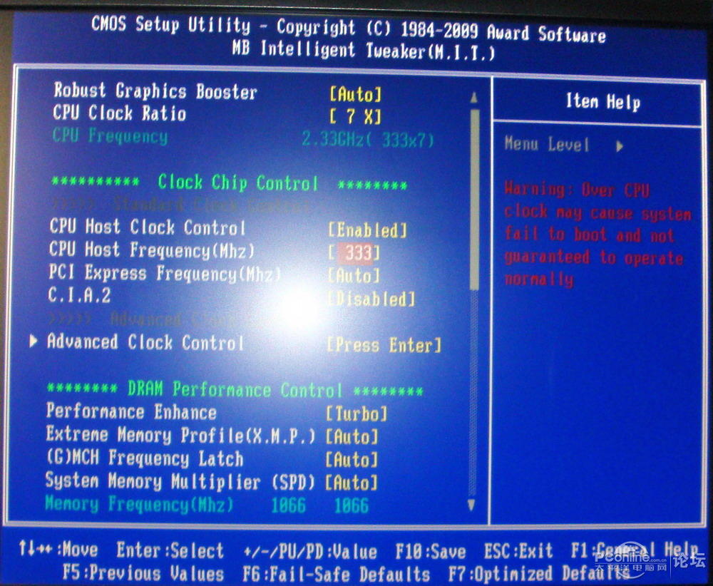 三、主频=外频*倍频,2.33=333*7。I U一般最高倍频锁死,如Q82为7,CPU超频简单来讲,就是提高外频以达到主频提高的目的。以下为CPU超频设置