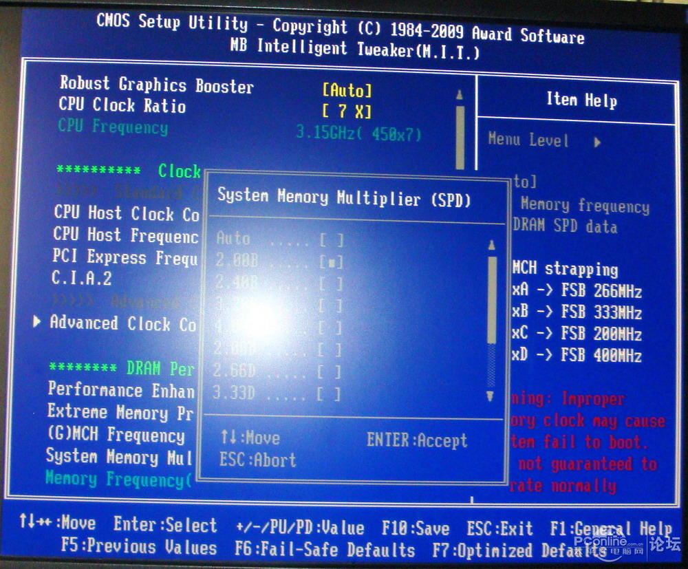 基本很多Q8200外频可上400,即是2.8G(400*7),新手可从400逐步+5往上调,由于该U体质尚小雕,教程就直接以450外频作示范