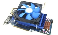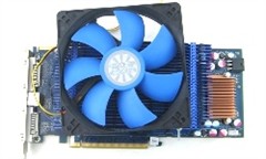 安装了推荐使用的9cm风扇的珊瑚海散热器,对于低端显卡来说,珊瑚海可以使用无风扇状态工作,但是对于Radeon HD4850这个级别的显卡,风扇也是必须要安装的。未安装风扇时,珊瑚海需要占用以一个PCI插槽位置,安装风扇后,更是要占用两个PCI插槽的位置,用户在使用时一定要留意自己主板的安装空间。