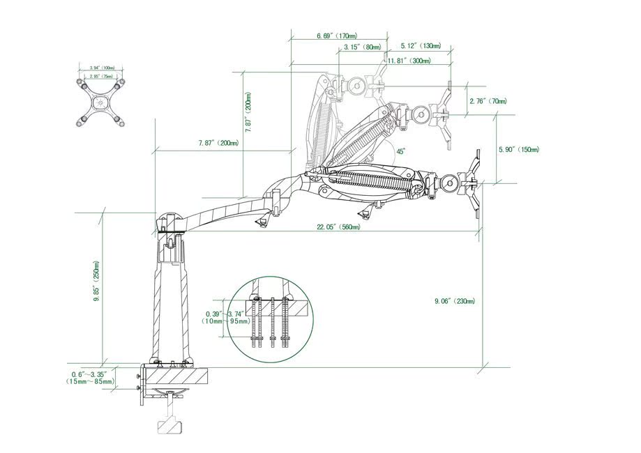 垂直式:在任何空间固定桌面位置、可上下,左右,前后移动调整到合适的位置