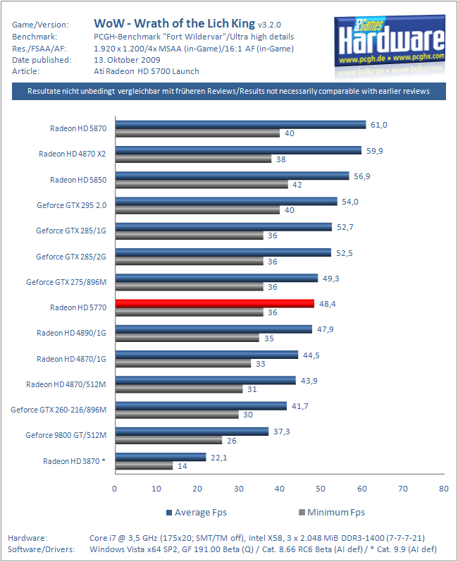 楼上一群信口胡言的,WOW对显存带宽根本不敏感,主要就看核心频率,5770在1920X1200 4xAA下都可以和GTX275打平。