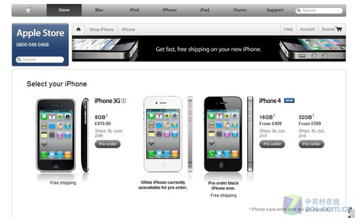 不过在昨天的预售活动开始之后我们却意外的发现了一些惊喜,那就是在苹果的英国官网上赫然出现了无网络锁版iPhone 4的销售页面,这也就意味着在首批率先预售的国家中英国将成为唯一的一个预售无网络锁版iPhone 4的国家。这对于全世界的用
