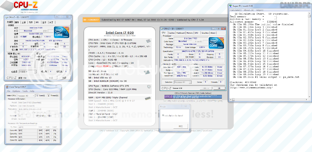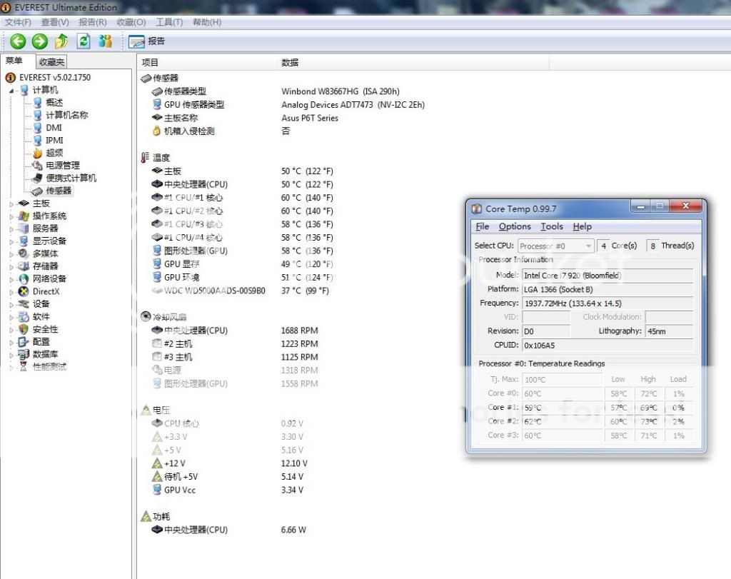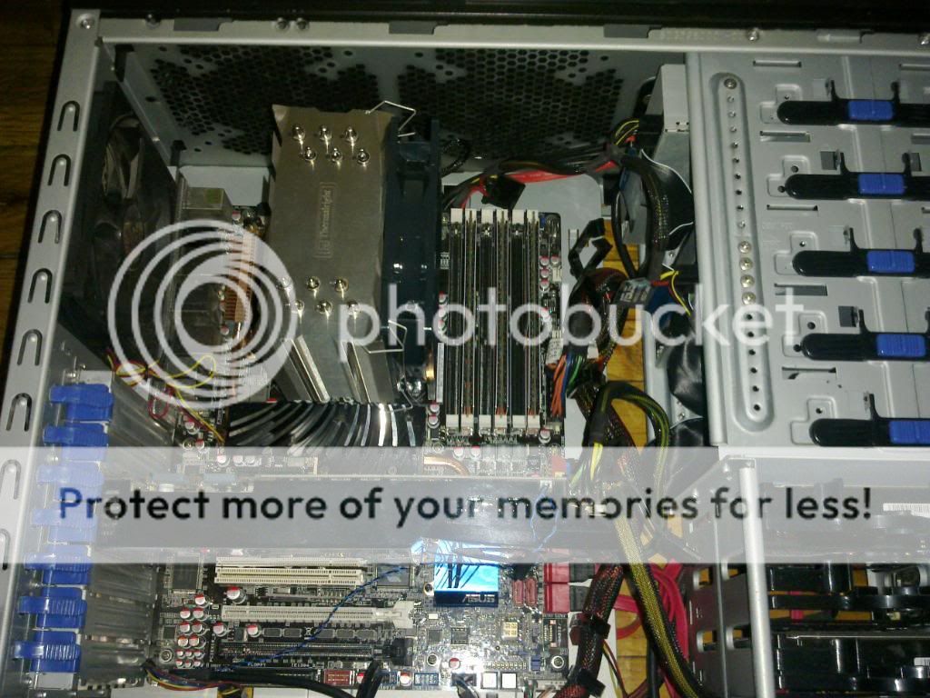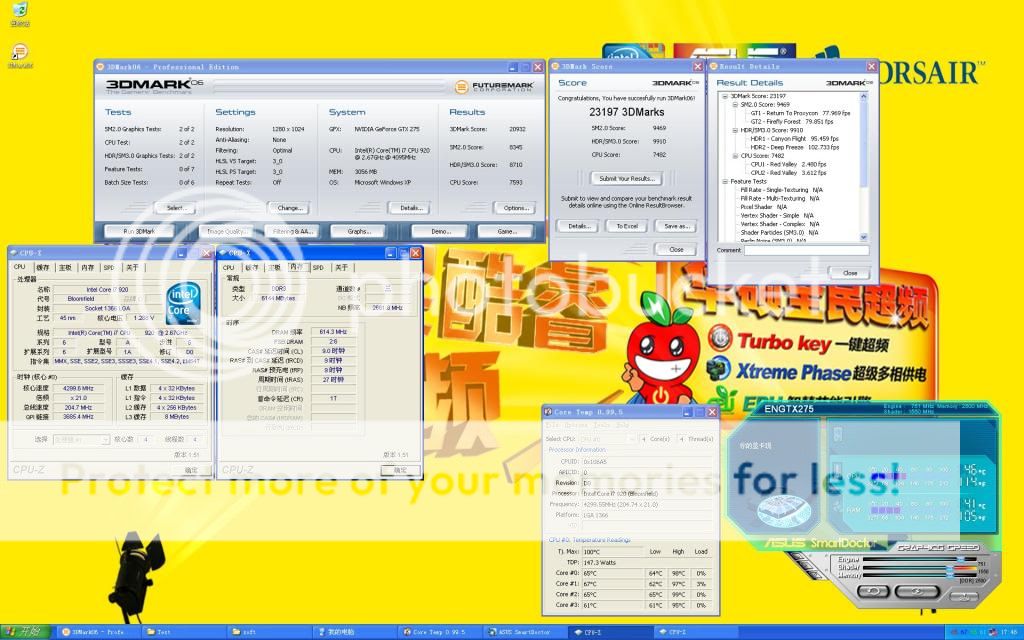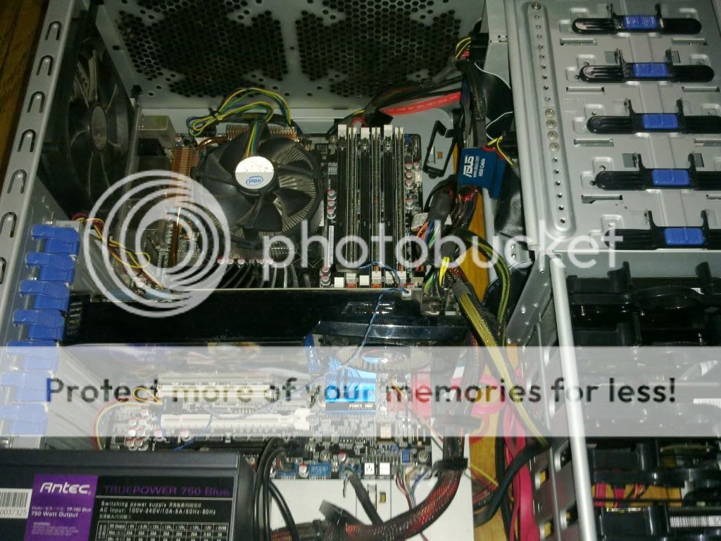 特别说明下机箱里还有T级硬盘三块光驱2个,硕大的GTX275卡身和阻挡了风道硬盘光驱都严重影响了机箱里的空气对流,要改善估计只有更换机箱了