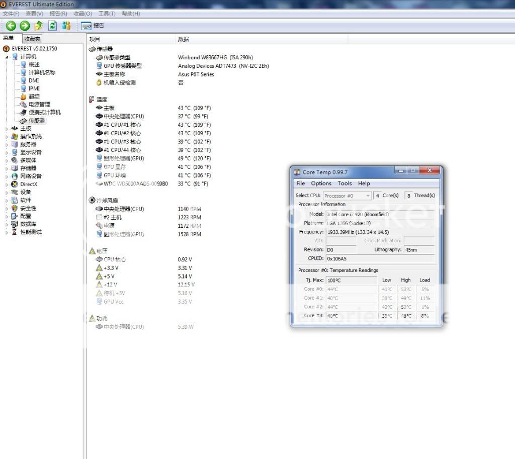 我的I7上4G,U12P,室温30度,待机也就37度左右,核心48度,机箱风道做好,会好很多,不然太烧了