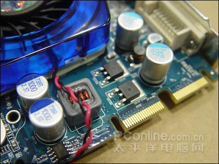蓝宝石HD2600PRO白金版出类拔萃的**已经证明了蓝宝整个HD2600系列核心与显存独立供电的设计的成熟与强大,不过这款HD2600PRO海外版更在原来白金版的基础上改进,电容部分全面采用了日本化工(NIPPON CHEMI-CON)PS系列顶级固态电容,**力应该能达新高度。显存供电同样采用日本化工(NIPPON CHEMI-CON)PS系列固态电容!从供电上消灭1.0ns DDR3显存超频的瓶颈。