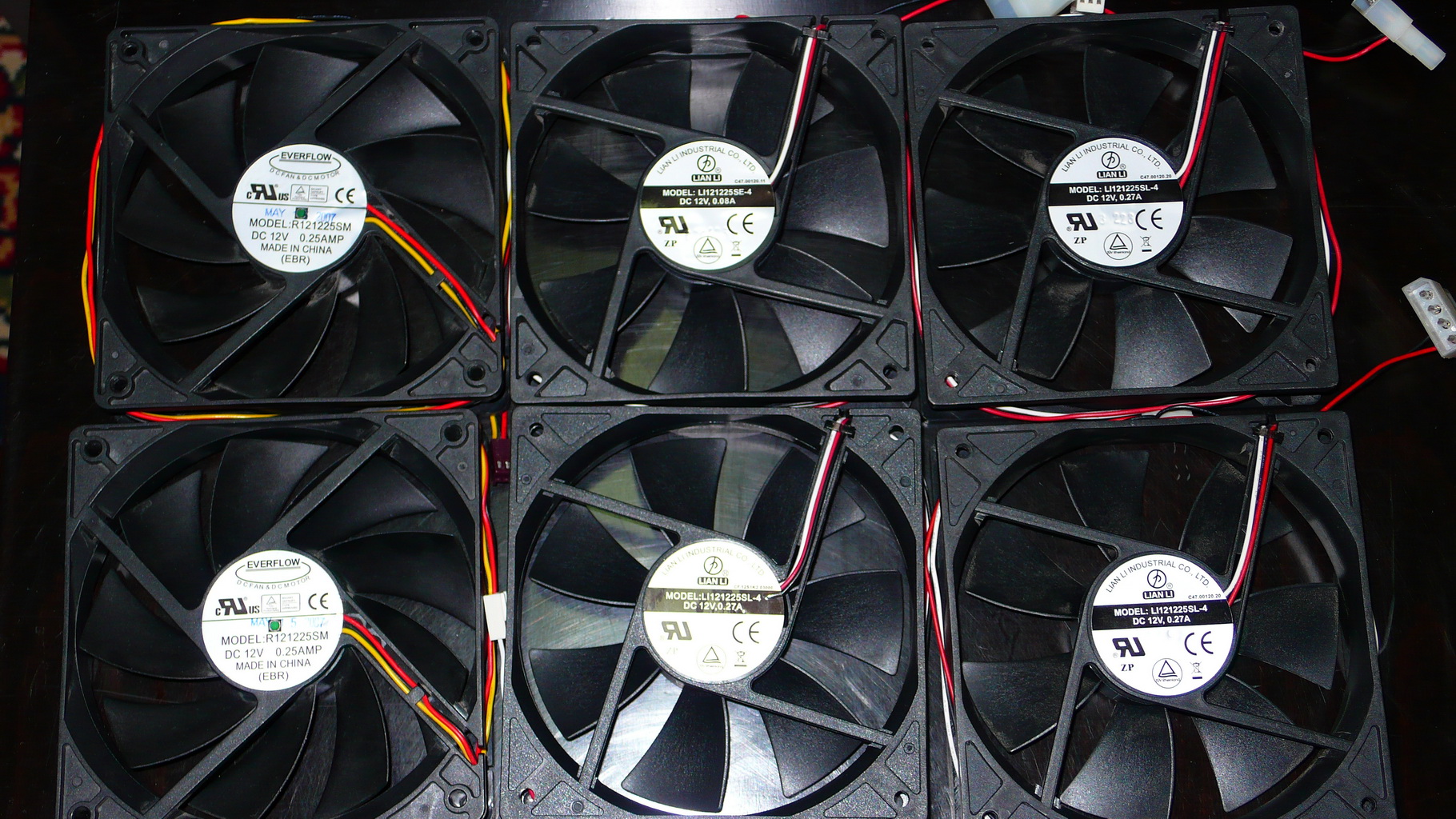 4个联力原配的12025风扇,其中3个是0.27A,一个是0.08A,两种噪音都很轻,适合做机箱通风的风扇。从联力的PC-9上买回来就拆了,上面只有螺丝痕迹,就当9成新吧,15一个