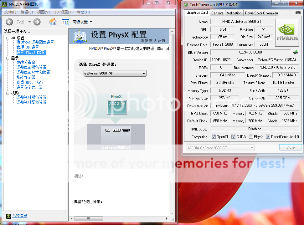 GPU-z上也写得很清楚,是zotec,也就是索泰的米格版,叫它缩水版也好,节能版也好,和我说的能否打开physx无关,为此,我再次装老驱动,为了给你一张贴图。