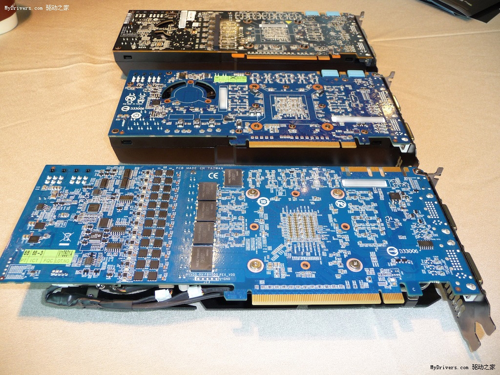 对比公版GTX 480/470,可以看出技嘉这款超级超频版的PCB长度已然超过了GTX 480。