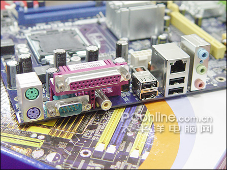 I/O接口方面,富士康945P7AE中规中距为我们提供了PS/2鼠标键盘接口,打印机接口,COM接口,同轴接口,4个USB接口,网卡接口,以及音频输入输出接口。