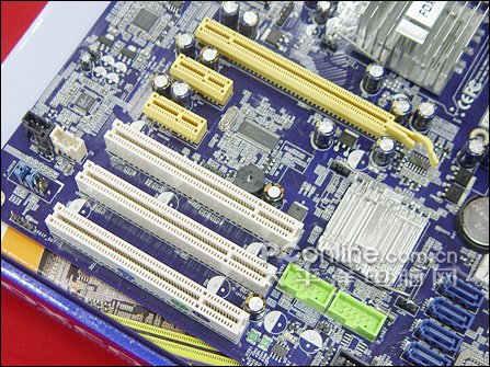 扩展方面,富士康945P7AE主板为我们提供了一条PCI-E 16X、2条PCI-E 1X、3条PCI插槽,4个SATA II接口,人性化地还保留了一个IDE并口跟一个FDD软驱接口。