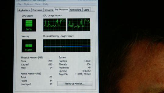 当基于GeForce 9400主板时,Core 2 Duo处理器在播放蓝光电影时的占用率为单位数,而使用单核心处理器则为两位数。除了视频硬件加速以外,数据的初处理还是由处理器来完成的。同时碟片数据的数据加密以及解密等操作都是由CPU来完成的。因此在这种情况下,你仍然需要一个高速CPU来观看蓝光电影。但是Atom处理器并不能算得上是一块高速处理器。